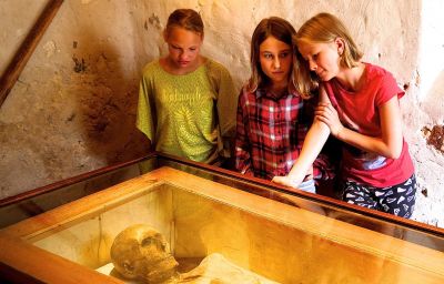 Wir suchen uns eine historische Figur aus dem Museum: Christian Friedrich von Kahlbutz und nehmen seine Geschichte als Grundlage für eine filmische Erzählung und recherchieren die Details zur Lebensweise der Menschen seiner Zeit in den umliegenden Museen. Dafür stehen vier museale Einrichtungen bereit: Die Gruft von Kampehl, das Museum Kolonistendorf in Großderschau für die Recherche der Schlacht von Fehrbellin, das Prignitzmuseum in Havelberg für die Lebens-und Arbeitsweisen der Menschen des 17. Jahrhunderts und schließlich das Lilienthal Centrum für die Recherche der Zeit der Entdeckung des mumifizierten Leichnams und seiner Entwicklung zum musealen Exponat. Als Ergebnis entsteht ein Fiktion-Film von Kindern für Kinder.